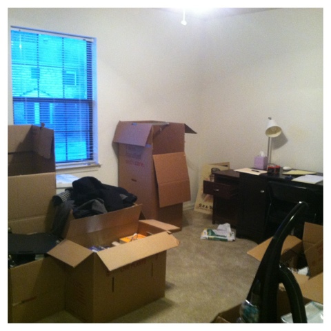 Our extra bedroom/Adam's office became our "just put it in there and we'll deal with it later" room. As you can see, we've masked that well....or maybe not so well. |
